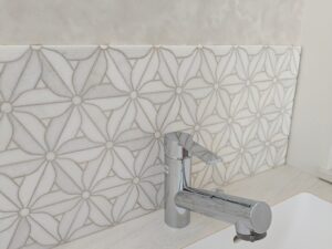 念願だった花型のタイルも取り入れることができました。